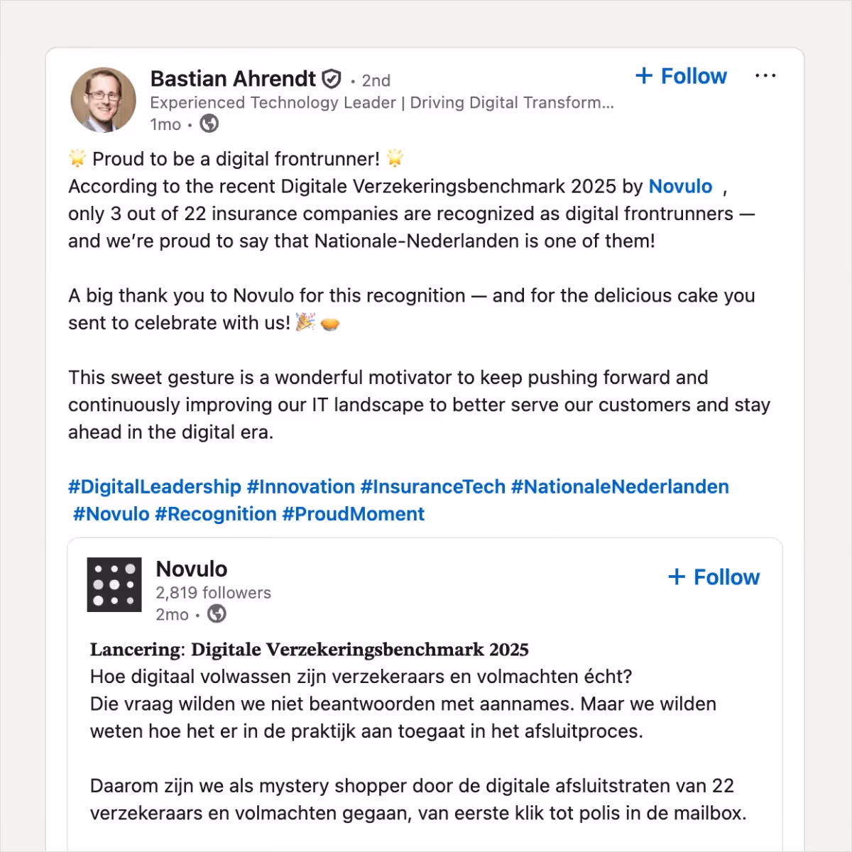 And for a playful twist, Novulo sent cakes to the top three companies in the benchmark. A small gesture that led to online mentions.
